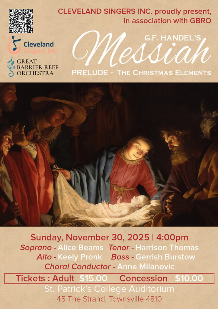 Cleveland Singers Inc. and players from the Great Barrier Reef Orchestra will be performing selections from G.F. Handel’s Messiah!
